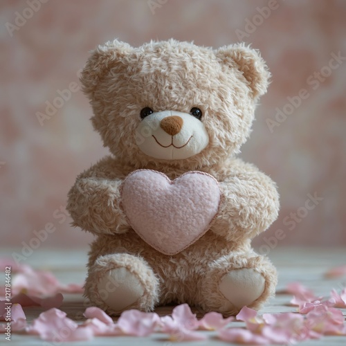 © Spyrydon, Obraz premium Teddy bear hugging heart