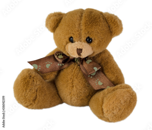 Obraz premium Teddy bear isolated on white background. Soft toy for gift, greeting card,...