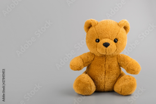 Obraz premium Teddy bear on grey background copyspace