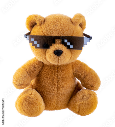 © azure, Fototapeta premium Teddy Bear wear thug life meme glasses isolated on white background with clipping path