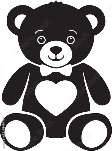 © Rayhan ID: #6344020, Obraz premium Teddy bear with a bow and love shape silhouette on a white background vector illustration.
