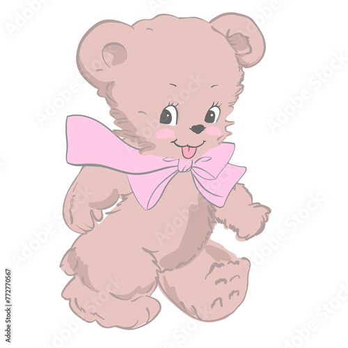 © Thalia, Naklejka premium teddy bear with a flower in pink