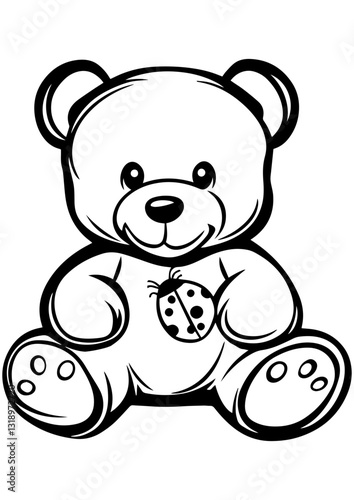 © Yana Sh, Fototapeta premium Teddy Bear with beetle ladybug illustration, Cute vector animal toy, Gift idea, printable, engrave laser, digital prints