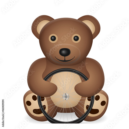 © Julydfg, Obraz premium Teddy bear with flat bicycle tyre