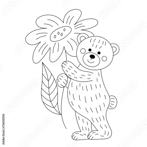 Obraz premium Teddy bear with flowers. Illustration for Valentine's day. Linear drawing for coloring.