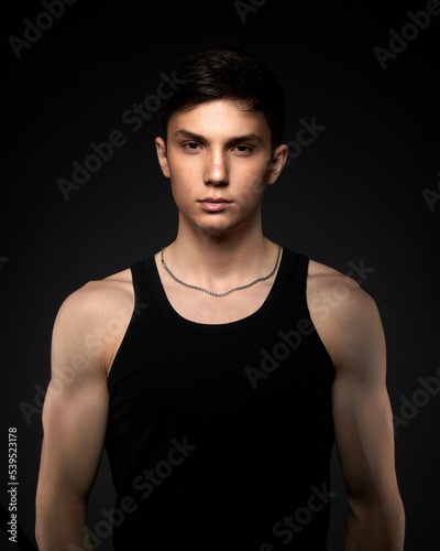Fototapeta premium Teen athletic body on dark background