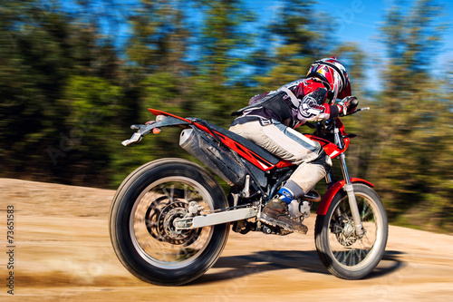 Naklejka premium Teen boy riding Motocross bike on gravel road