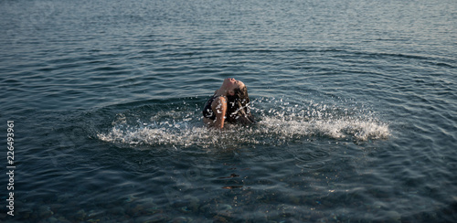 Fototapeta premium teen flipping hair in water and making a splash