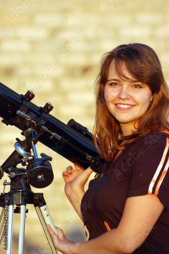 Obraz premium Teen girl and telescope, Near Kiev,Ukraine