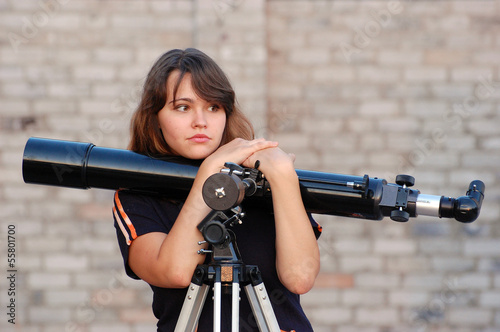 Obraz premium Teen girl and telescope, Near Kiev,Ukraine