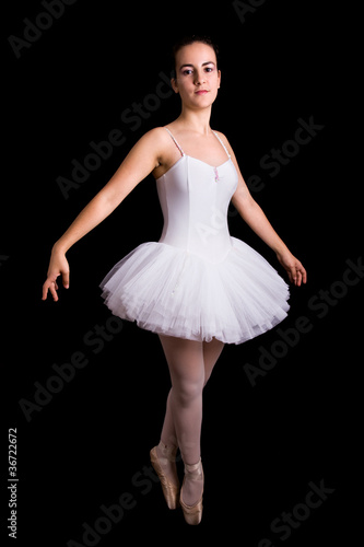 © cristovao31, Naklejka premium Teen girl ballet dancer standing in white tutu on black backgrou