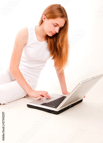 © Gerald Bernard, Naklejka premium Teen Girl on Laptop