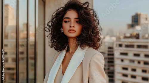 Fototapeta premium Teen Indian Woman with Brown Curly Hair creative poster.