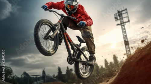 Fototapeta premium Teenage bmx BMX rider in action at skatepark