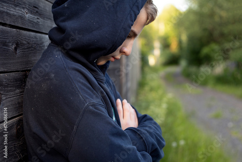 © Наталья Жукова, Fototapeta premium teenage boy walking in the village in summer