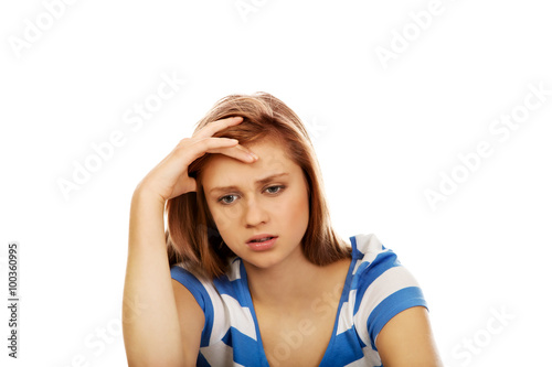 © Piotr Marcinski, Fototapeta premium Teenage depression woman sitting on the floor