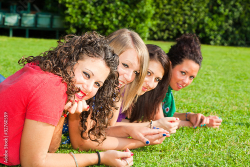 © william87, Fototapeta premium Teenage Female Friends Lying on Green at Park