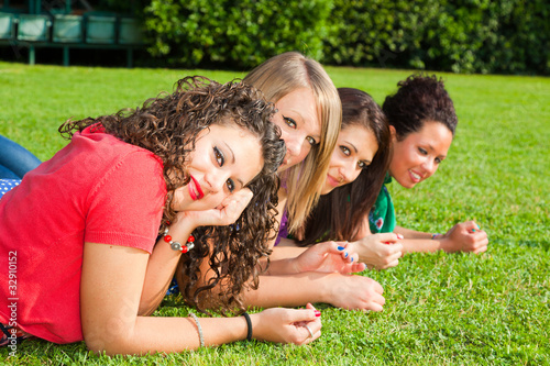 © william87, Fototapeta premium Teenage Female Friends Lying on Green at Park