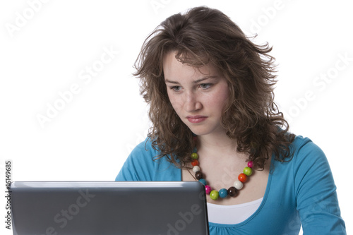 © Picture Partners, Naklejka premium Teenage girl is sitting behind a laptop