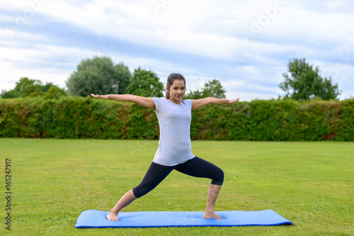 © michaelheim, Fototapeta premium Teenage girl practising yoga outdoors