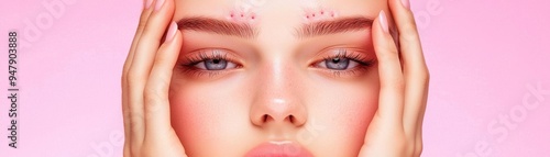 © Phisan, Fototapeta premium Teenage girl with acne on her forehead, gently touching her face