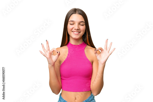 Fototapeta premium Teenager caucasian girl over isolated background in zen pose