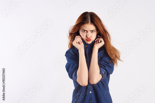Fototapeta premium 2046243 teenager, denim shirt, light background, free space for copying