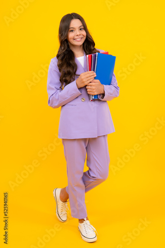 Fototapeta premium Teenager school girl study with books. Learning knowledge and kids education...