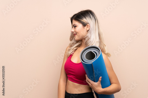 Fototapeta premium Teenager sport girl over isolated background with a mat