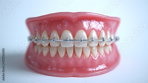 Obraz premium Teeth alignment progression, showing gradual movement with braces tightening...