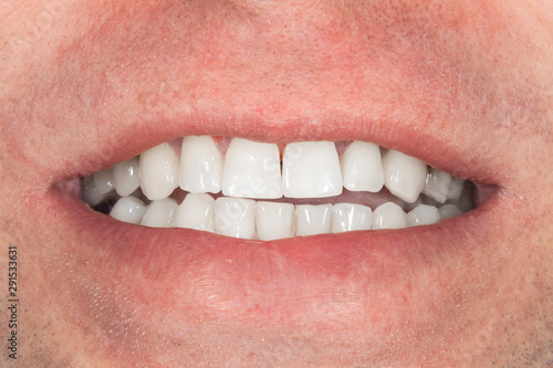 © Сергей Кучугурный, Obraz premium teeth whitening close-up macro. Hygiene of the human oral cavity after admission to the dentist