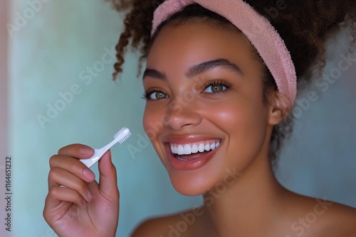 © acnaleksy, Obraz premium Teeth whitening: Smiling person using a teeth whitening kit to make white their smile