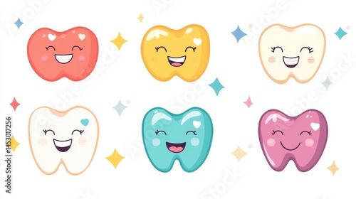 © Xayal, Obraz premium Teeth with smile illustration. Dental care icons
