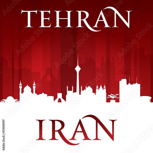 © yurkaimmortal, Fototapeta premium Tehran Iran city skyline silhouette red background