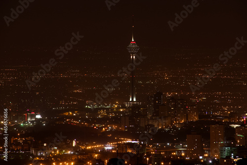 Naklejka premium Tehran Milad Tower at Night from Far Away, IRAN