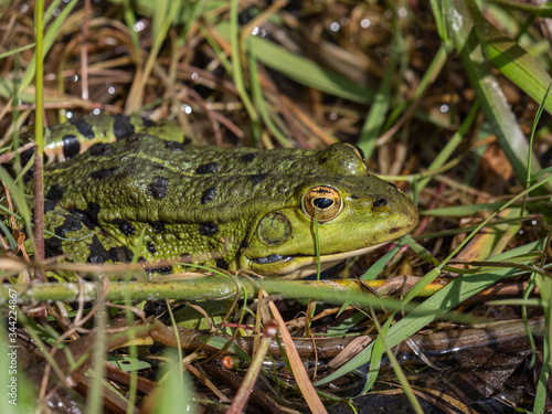 © StG Stockfoto, Fototapeta premium Teichfrosch (Rana esculenta) im Gras am Teich
