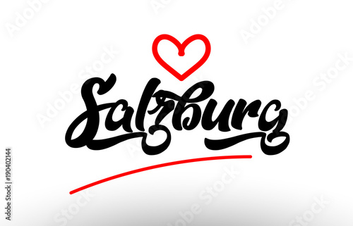 Fototapeta premium tekst słowny salzburga europejskiego miasta z czerwonym sercem dla promocji...