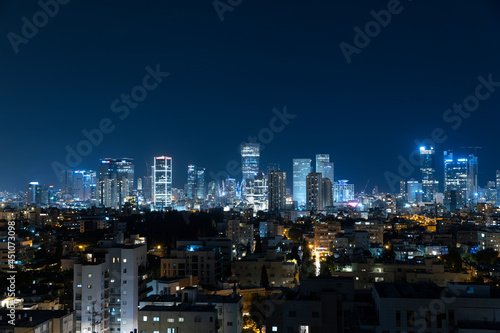 Obraz premium Tel Aviv Skyline At Night, Tel Aviv Cityscape, Israel