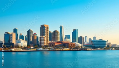 © Lalita, Fototapeta premium Tel Aviv skyline, modern architecture, blue sky, vector illustration Ideal for travel, tourism, and business presentations, abstract, skyscraper