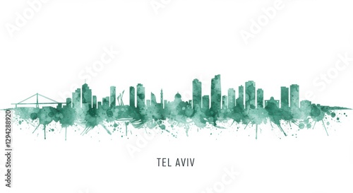 Obraz premium Tel aviv skyline silhouette with artistic green watercolor effect