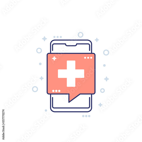 © nexusby, Obraz premium Telemedicine, medical app icon with smart phone