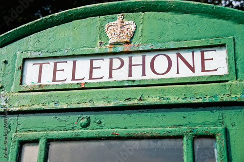 Fototapeta premium Telephone box which has been painted green, traditionally done in Ireland.