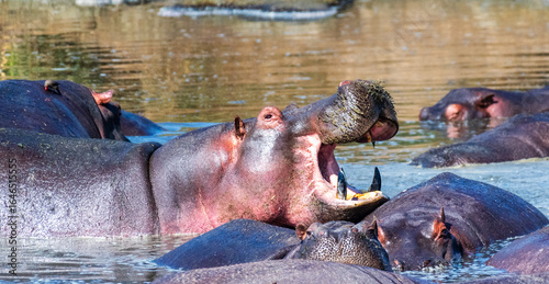 © Goldilock Project, Fototapeta premium Telephoto of a hippopotamus, Hippopotamus amphibius, floating partially submerged in a hippo pool in the Serengeti National Park, Tanzania