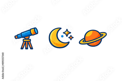Obraz premium Telescope, moon, and planet symbols shown in a simple design for space exploration theme in a digital format