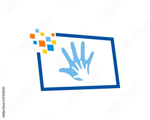 © Jefry Maviskho, Obraz premium Television with hand and pixels