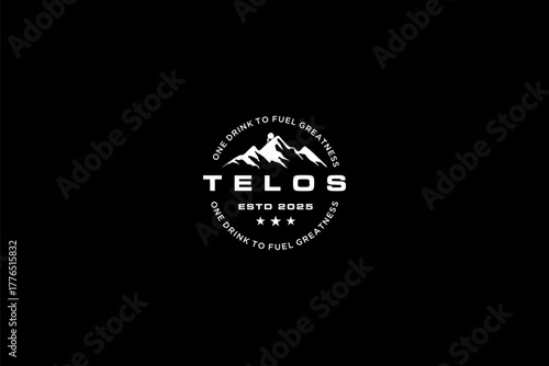 Fototapeta premium Telos logo featuring a mountain range and stars symbolizing strength and adventure.