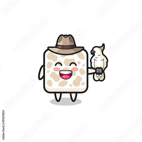 Fototapeta premium tempeh zookeeper mascot with a parrot