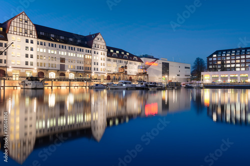 © Berlin85, Obraz premium Tempelhofer Hafen in Berlin zur blauen Stunde.