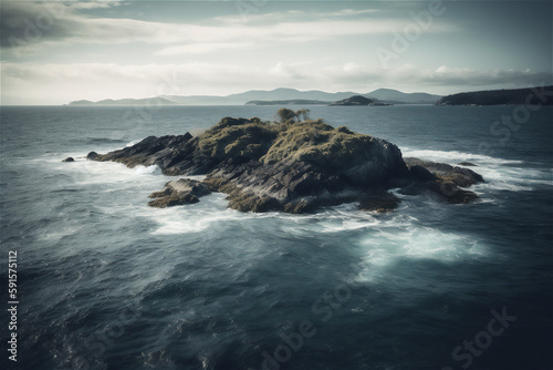 Obraz premium tempestuous coastal landscape with island at the horizon, generative ai