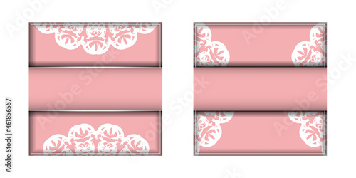 © Javvani, Fototapeta premium Template Congratulatory leaflet in pink color with mandala white ornament for your congratulations.